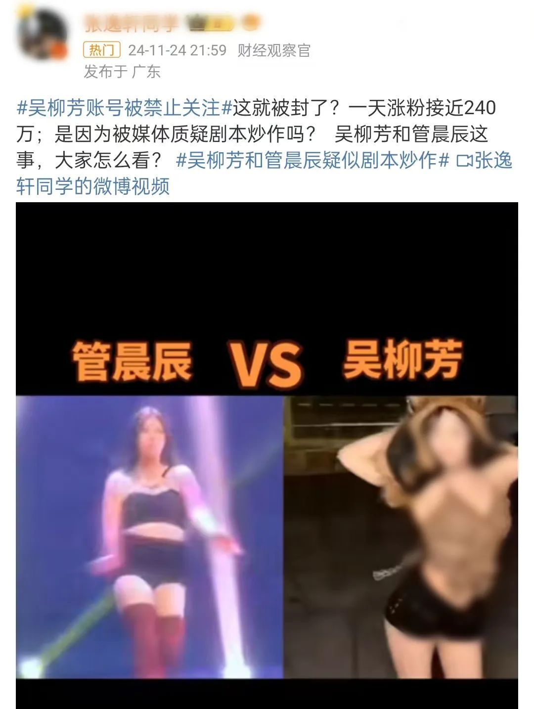 两人的争吵事件后,有网友扒出了管晨辰以前也跳过类似擦边舞蹈。