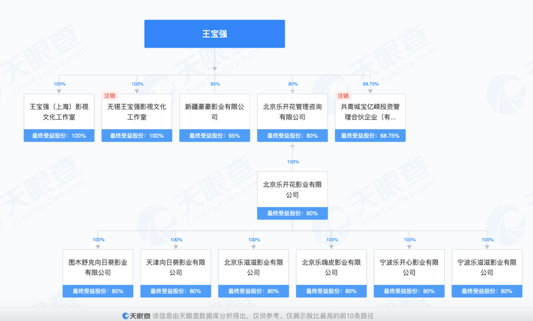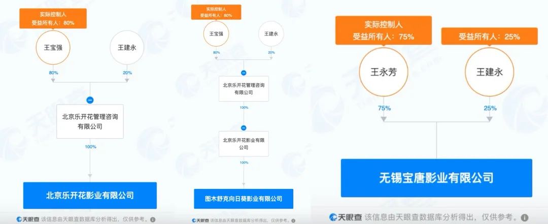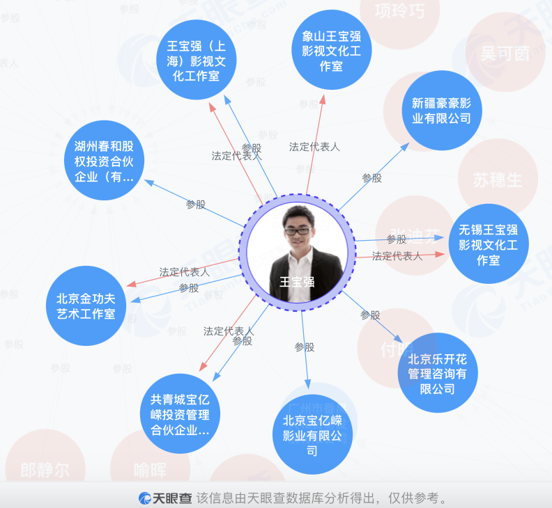 出品的4家公司中,除了天津猫眼公司,其他3家均是王宝强的公司(注:王建永为王宝强亲哥,王永芳为王宝强亲姐)。