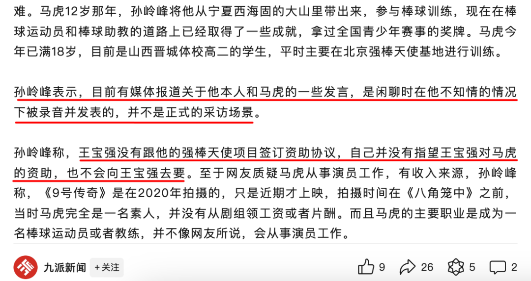 后来马虎的教练出来回应,称爆料录音是闲聊时被录的,不是正式的采访场景;王宝强也没有和其签订资助协议,并没有指望王宝强对马虎的资助,也不会去向王宝强要钱。