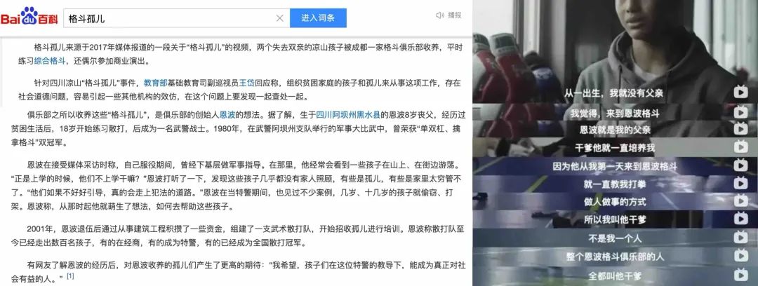 2017年,媒体报道两名失去双亲的凉山孩子被成都“恩波格斗俱乐部”收养,平时练习综合格斗,还偶尔参加商业演出,这件事受到社会广泛关注后,被称为“格斗孤儿”事件。
