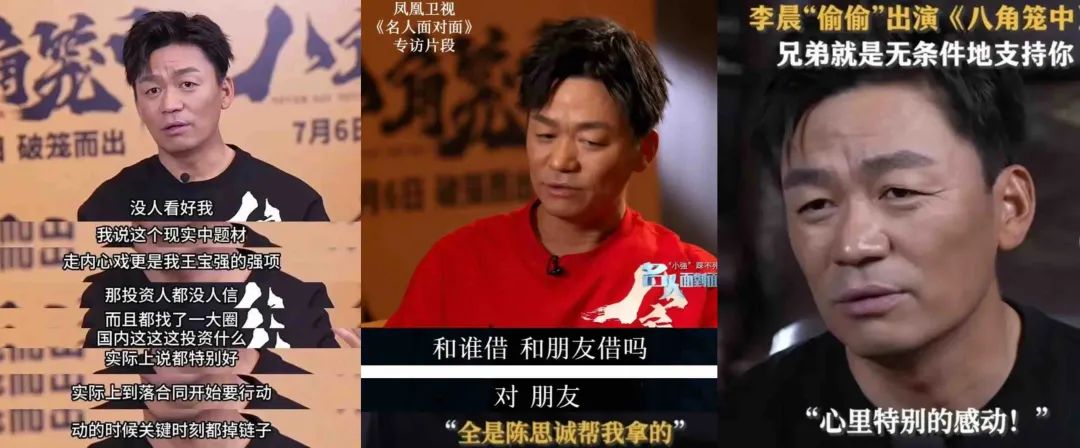 据悉,八角笼中筹拍期并不简单,先是剧本筹划了两三年,又是找不到投资人,拍成后制作宣发也成问题,没办法的王宝强几乎包揽了影片出品人、总制片人、编剧、导演、主演等多个职务,找好友陈思诚投资、圈内好友免费客串……最终影片才得以上映。