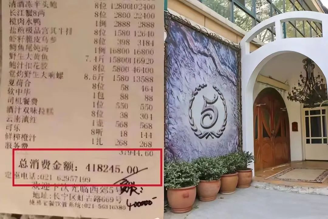 从账单上看,40万的饭钱,加上自带的酒水约50万,一顿饭就花了近90万,相当于吃掉了一套房。