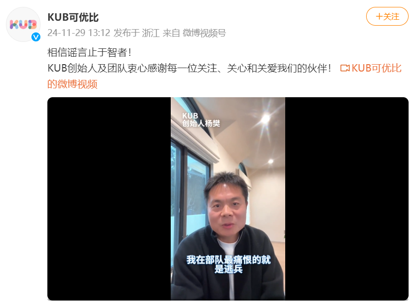 随着消息发酵,可优比创始人杨樊发布视频回应了公司问题,
