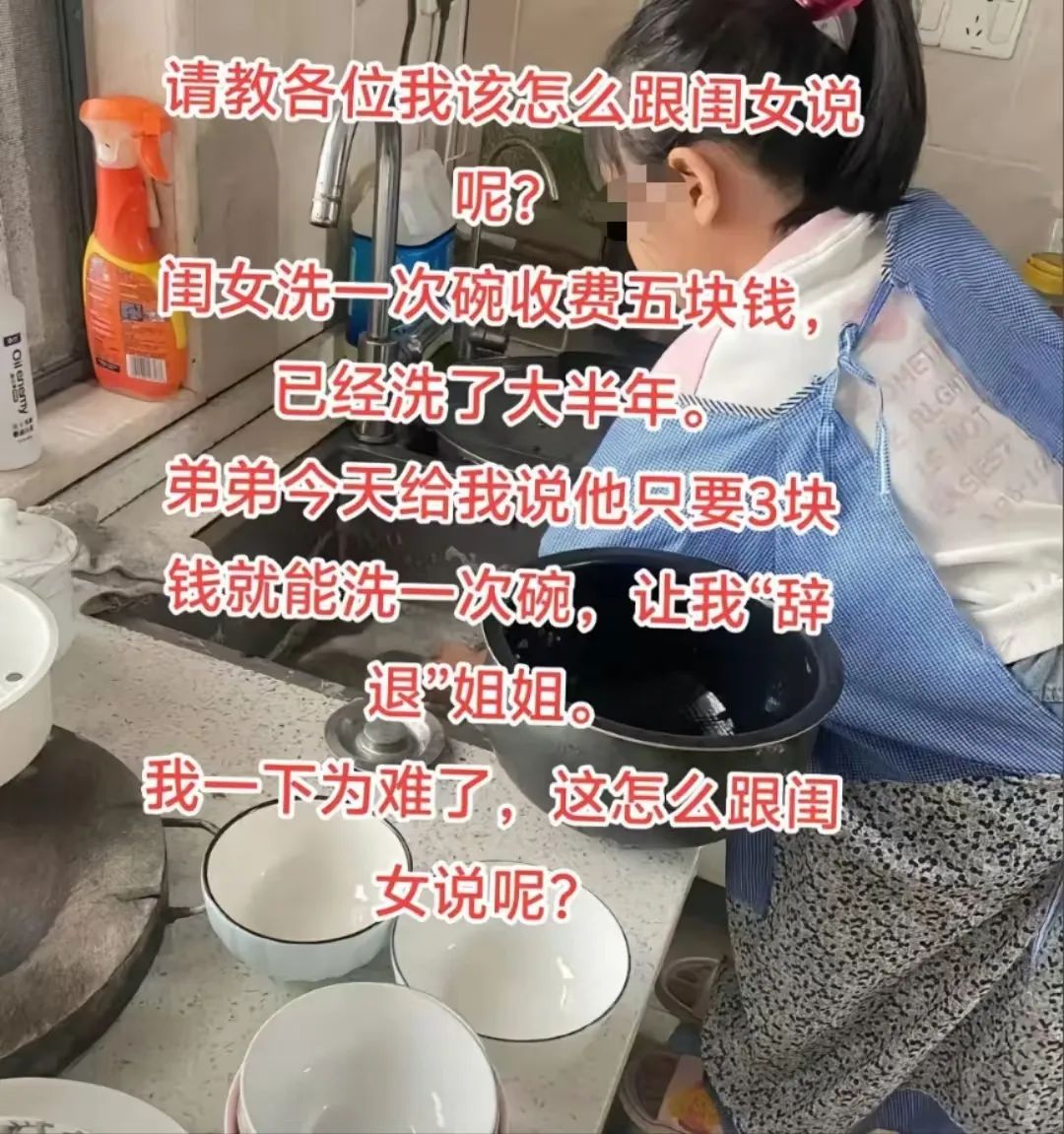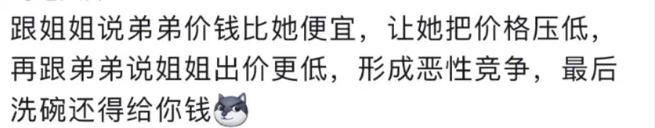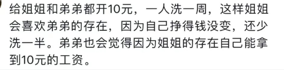 这几天我就刷到一个妈妈因为家里两个孩子抢着洗碗赚钱而苦恼的视频: