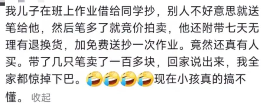 主要是现在像她这样利用自己的“小聪明”在学校经商的小孩还不少,
