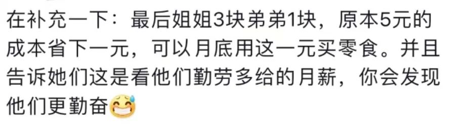 从此,姐弟俩做家务再也不要钱了。