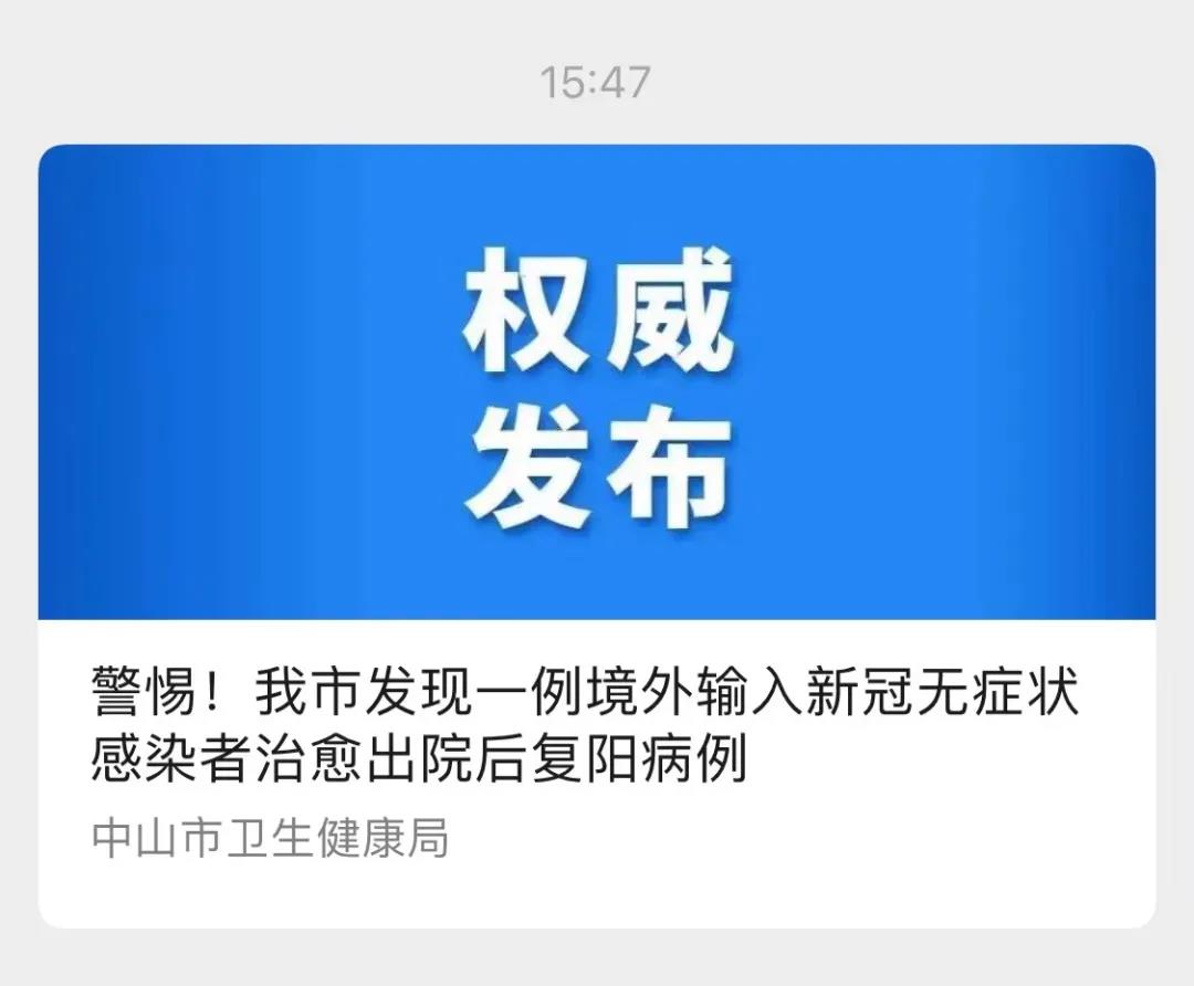 刚刚通报!中山一无症状感染者治愈出院后复阳