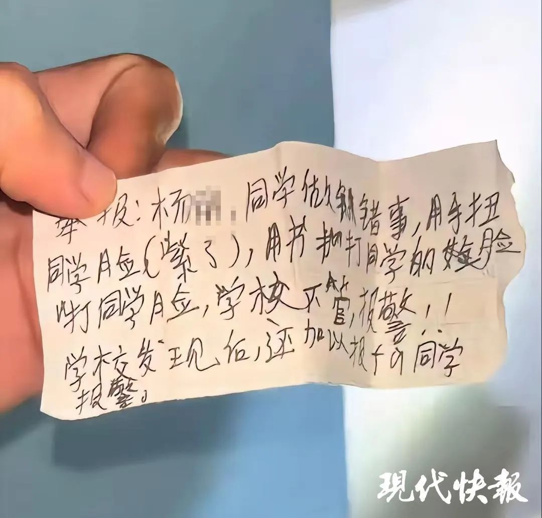 12月1日,浙江瑞安市洪先生发布视频称,自己在前几日夜里和朋友一同前往已经废弃的锦湖实验小学,在一个投诉信箱内发现多封举报信,内容涉及某教师殴打学生。12月2日,记者致电瑞安市教育局,工作人员称已有相关科室介入调查。 据视频内容显示,洪先生与多名好友结伴,在夜间前往锦湖实验小学,该校区因当地建设规划,于2023年下半年废弃,尚未拆除。据洪先生表示,他当时和朋友打闹,把投诉信箱的门拍坏:“那个信箱只能用钥匙打开。”该投诉信箱上面标有“校园悄悄话”“警察叔叔信箱开通啦!”“想说的、不敢说的都可以给我们来信”等内容。 信箱被打开后,洪先生和朋友发现其中有多封举报信,均是由该校学生所写。其中既有举报“老师借红笔未归还”“同学打闹”等内容,也有两封对老师的举报信。内容为:“杨某老师把我的脸捏得又青又紫”“举报:杨某。同学做错事,用手扭同学脸,用书打同学的脸,学校不管”。