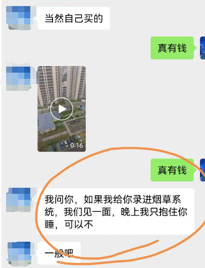 在后续沟通过程中,孙玲多次出现言语挑逗,如“胖子一般是不是大胸啊?”“你来了住我家,反正要结婚,碰你也没事。”甚至称“如果我给你录进烟草系统,我们见一面,晚上我只抱住你睡,可以不?”