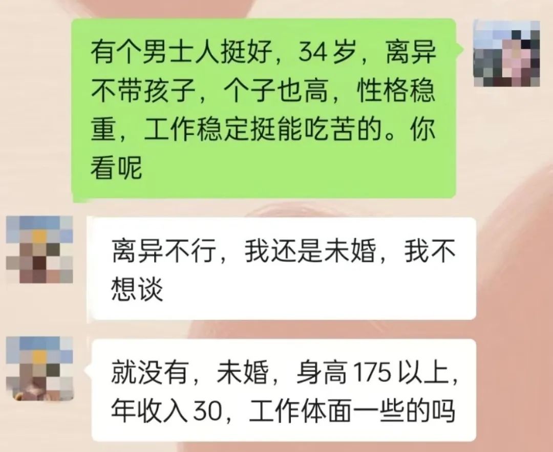 还好轩姐手头资源多,178男士还真有,但年龄稍微大了点年收入没有172高。轩姐一翻,发现还有个34岁大哥,个子高性格好工作稳定收入强,唯一的问题就是离过婚但不带孩子。