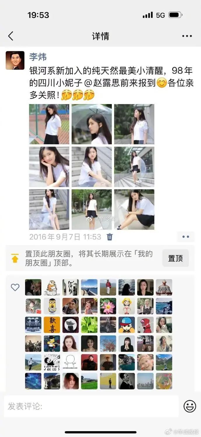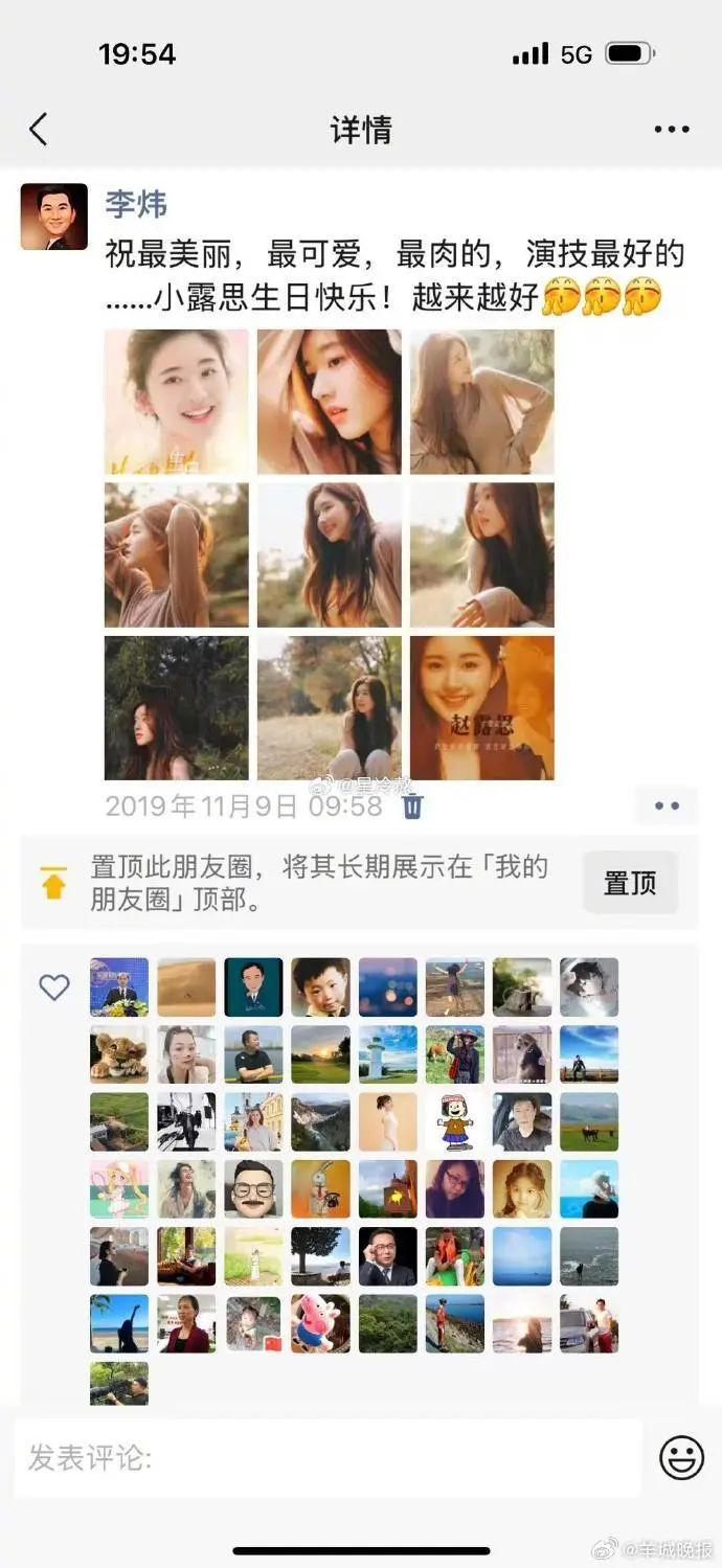 在长文最后,李炜还晒出了多张朋友圈截图,“自证”与赵露思的关系一直不错。在长文中,李炜还透露自己因“手滑”不小心点赞赵露思负面微博后注销账号。