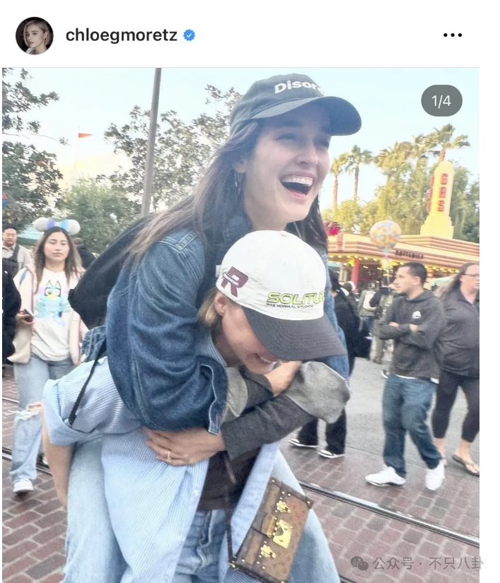 今年5月还发了一起去迪士尼游玩打闹的照片↓