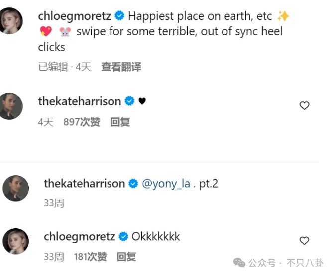 凯特的社交账号上除了发布她作为模特的一些代言作品之外,基本就是和科洛的合影与照片。