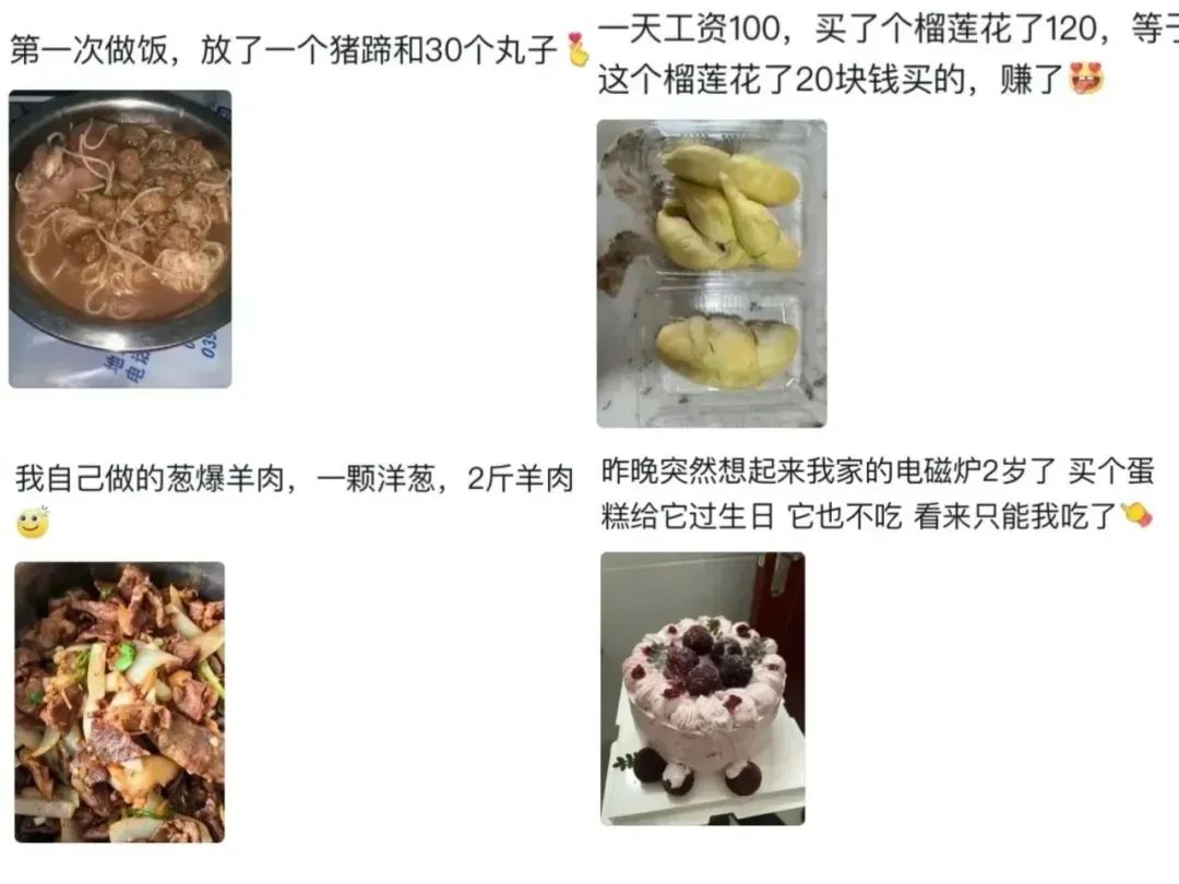 比如,有人晒出了自家三个人的晚餐,一盘红菜苔、一盘泡菜;