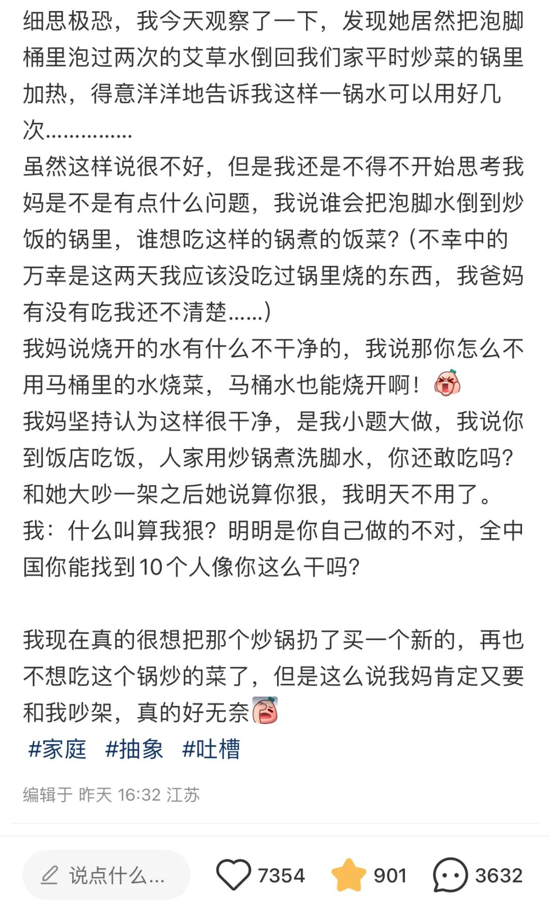 有人的公公,用儿媳妇那洗漱完都是洗面奶泡沫的洗脸水,做了一锅海带汤,老两口喝完了