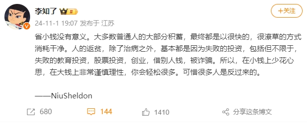 省小钱没有意义,大多数普通人的大部分积蓄,最终都是以很快的、很潦草的方式消耗干净。
