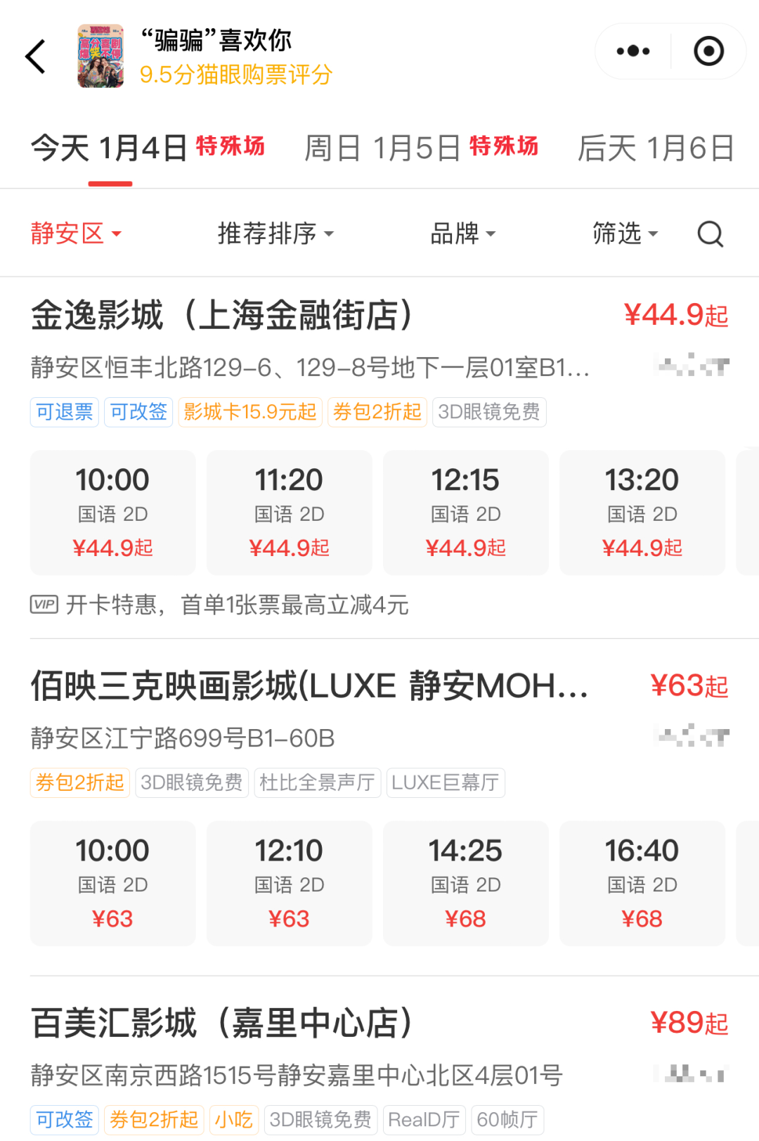 据报道,在相关购票平台上,由金晨、孙阳、李雪琴等主演的《“骗骗”喜欢你》和由焦俊艳、张琪、于洋等主演的《火锅艺术家》两部喜剧电影最低票价均在19.9元左右徘徊。根据影城和场次的不同,票价浮动较大,最高价与最低价相差近40元。