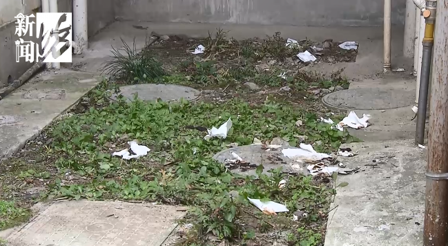 有大大小小的纸巾散落在地上,纸巾里包裹着污物,疑似排泄物
