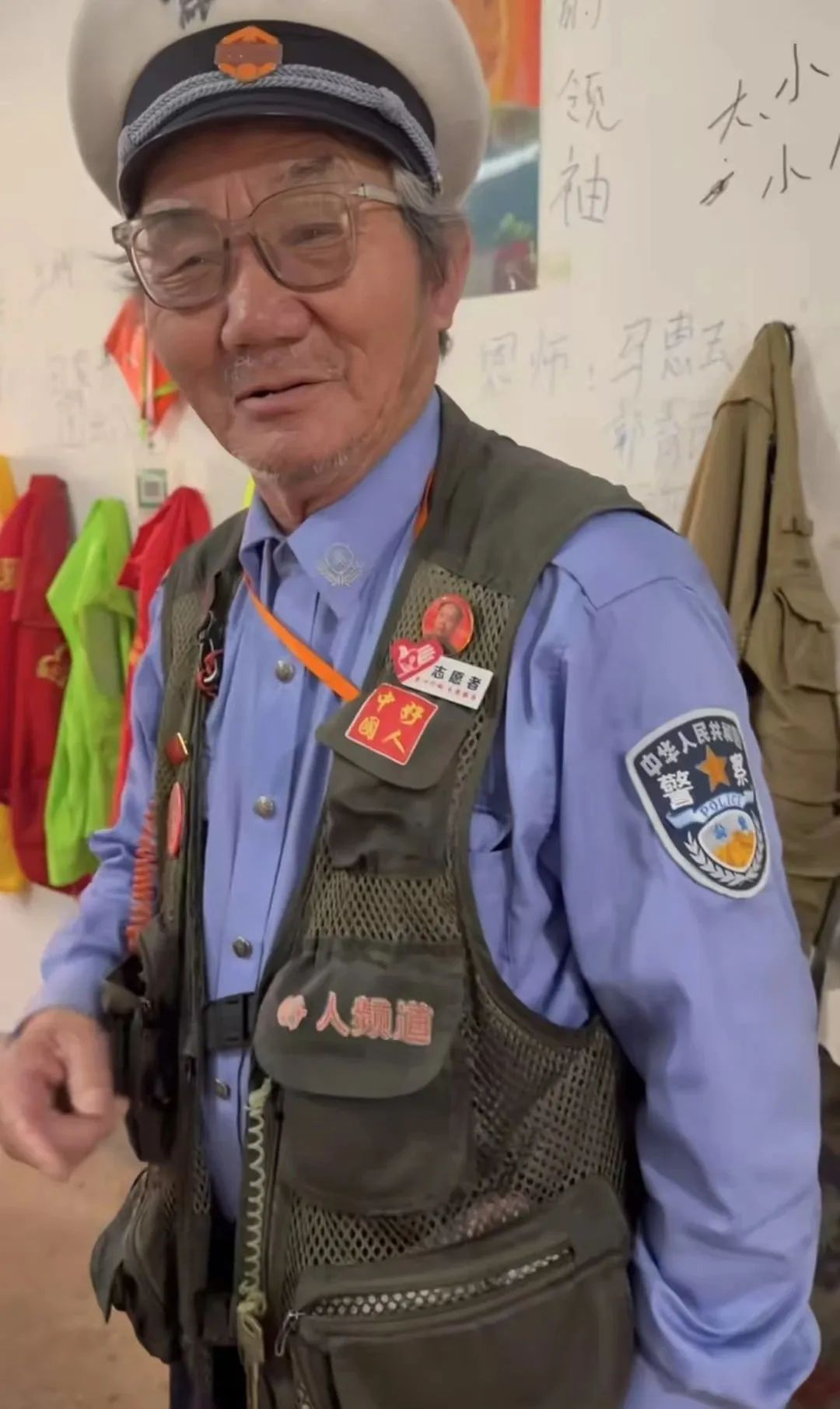 每当午夜梦回,张爱情被惊醒的时候,总是喊着家人的名字。“如果当时有人跟她喊上一句注意安全,他们可能就不会死了。”每天早高峰和晚高峰,马路上一定会出现张爱清指挥交通的声音。看到没有家长陪同的孩子过马路,张爱清立马走上前,主动牵着他们的手,把他们安全送到马路对面。因为听不见,他在帽子上写上“聋子”两个大字,然后用略带夸张的动作,提醒大家注意安全。时间久了,执勤点的保安大叔和小区门口卖手抓饼的阿姨都成了他的好朋友。碰见不遵守交通规则的人或者车辆,轻则吹胡子瞪眼,重则抬脚“踹人”。一开始,很多人都觉得他是没事找事,退休金太多闲得慌。可当大家听说了他的故事后,脸上都会浮现起动容的神色。令人难以想象的是,这份不收钱的工作,张爱清一干就是35年。“这份工作,我会干到干不动为止。”