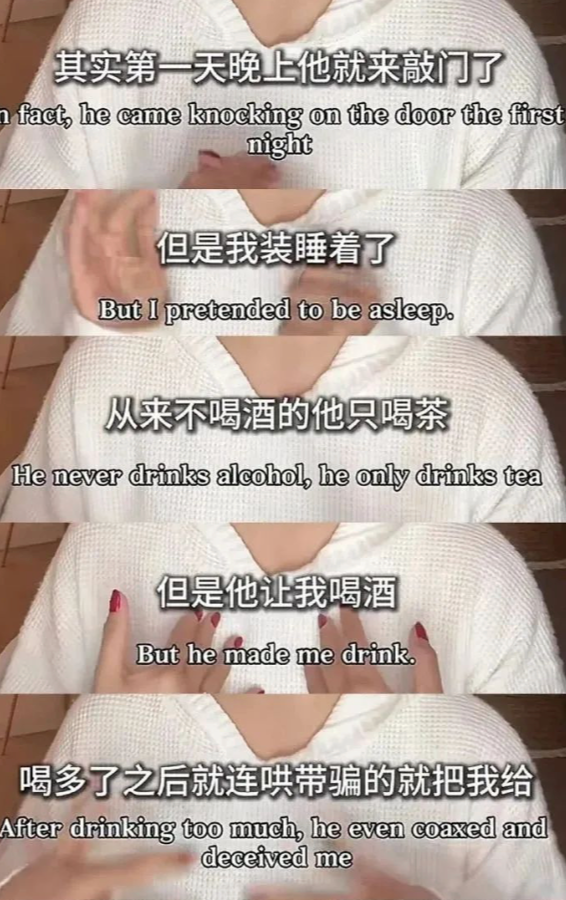 因为上课要住在对方家里,第二天,她就被对方灌醉发生了关系。