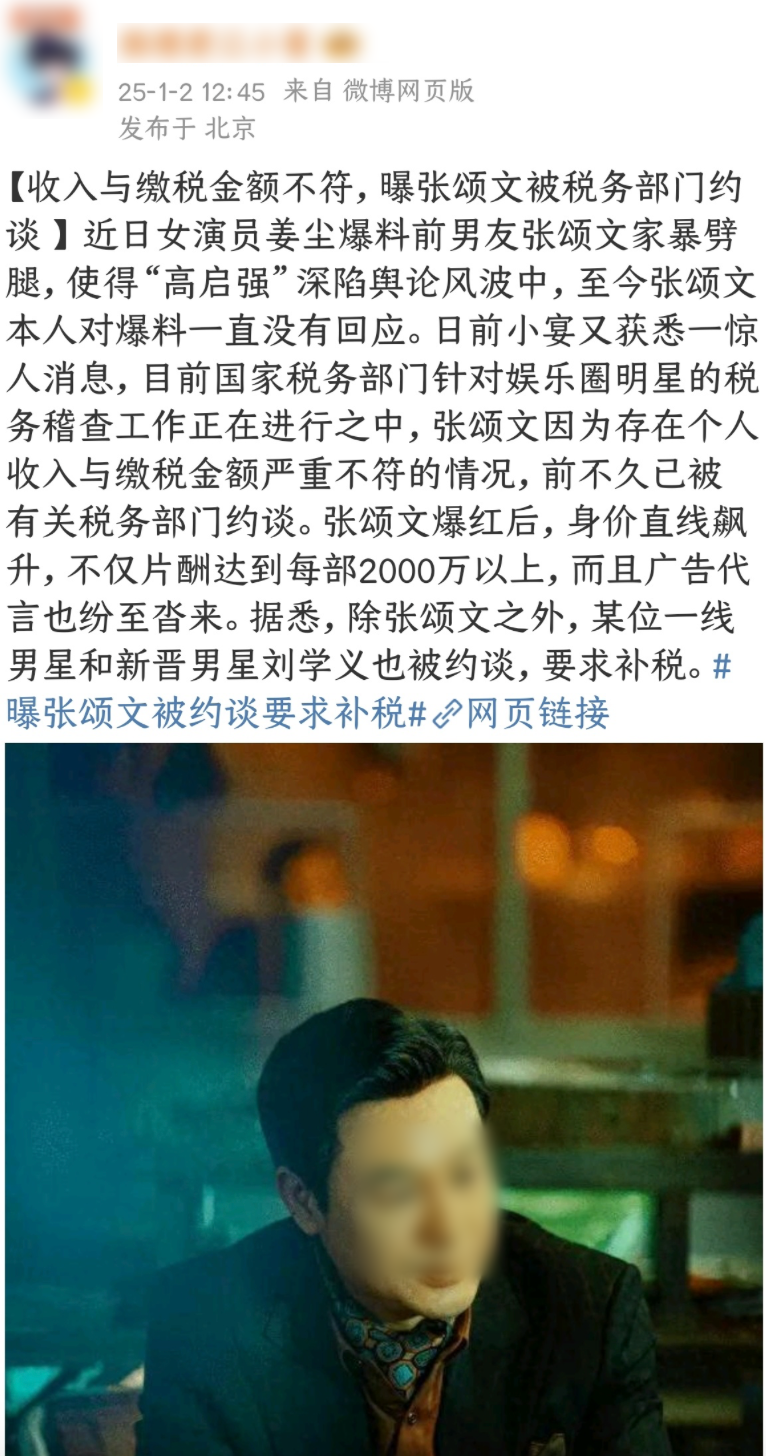 媒体曝光张颂文因为偷税漏税被有关部门约谈。