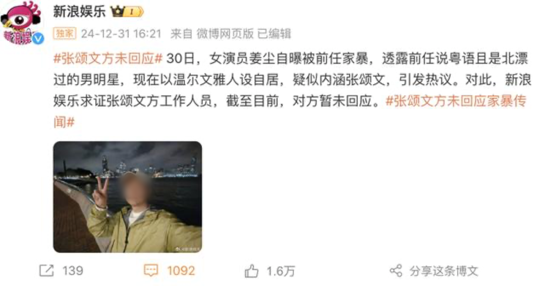 其次,对于这么大的负面新闻,这么多天了,张颂文工作室竟然至今都没有出面否认,更没有辟谣,