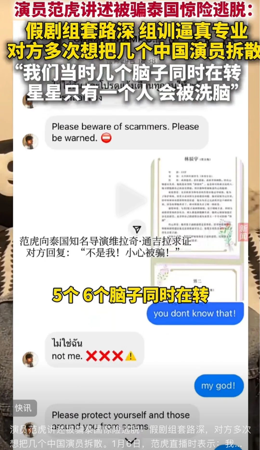 那些人用泰国GMM(泰娱公司)的名头,在国内招揽演员去拍摄,王星一开始也并不是没有防备,但无奈骗子的手段太高明。