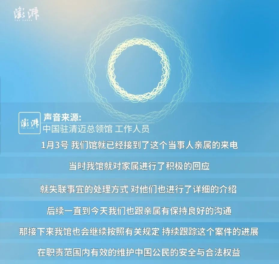 7日,中国驻泰国清迈总领馆处工作人员回复记者也称,使馆正与缅方相关部门开展联合调查,若调查取得进展,将在第一时间予以通报。