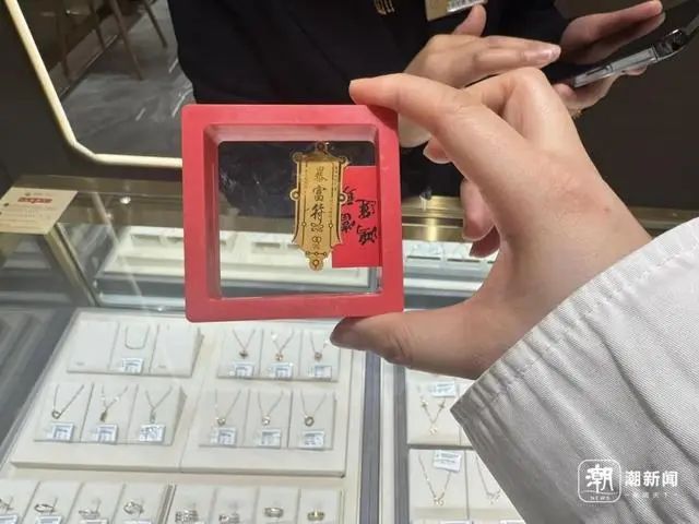 在一家中国黄金线下门店,有售卖一款售价6.6元的“暴富符”贴纸,“这款克重不怎么多的,价格很便宜,就是买来装饰用的。”店员说,如果想选购克重更多的,可线上下单一款价值99元的黄金贴纸。