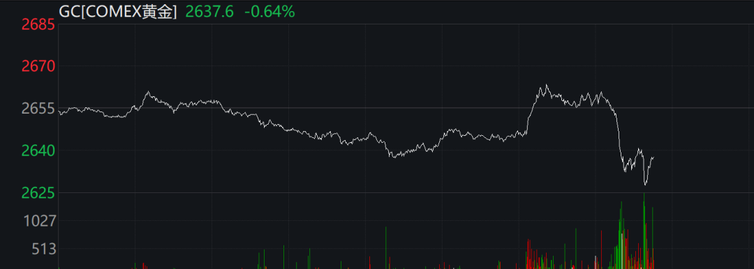 值得注意的是,1月6日晚间,黄金突然直线跳水。COMEX黄金最新报价2637.6美元/盎司,短线跌近30美元/盎司。