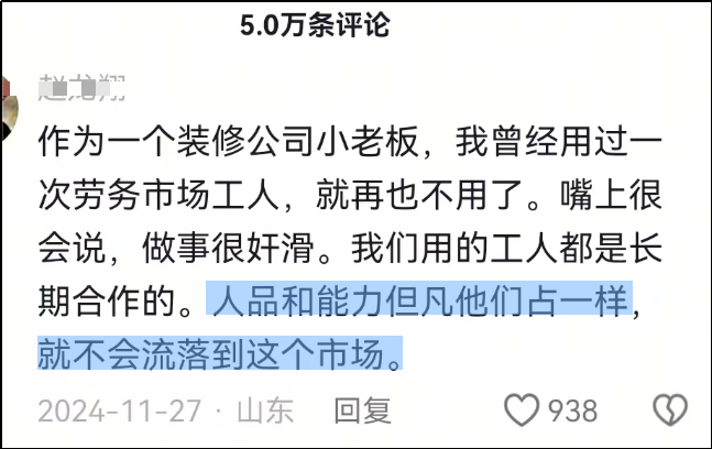 一个重要原因在于像装修劳务市场这样的,算不上完全饱和。