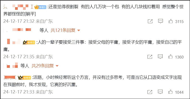 这些人有生活经验,虽然说出的评论可能被认为冷血,但也同样得到了不少的转发和点赞。