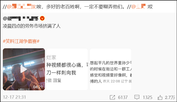 但实际上这里面很多博主也未必真关心农民工,倒是更乐意消费他们的窘境。
