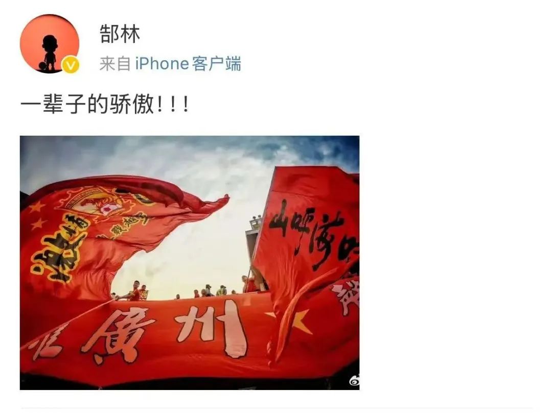 为争取获得新赛季职业联赛准入,俱乐部通过多种方式努力前行。然而,由于背负着沉重的历史债务,所筹得资金不足以清偿,最终未能获得准入,对此我们充满遗憾。在此,我们向所有关心、支持广州足球俱乐部的社会各界人士,以及广大球迷朋友们,表达我们最诚挚的歉意。同时,感谢大家的理解与宽容,我们将不改初衷,全力做好各项善后工作,支持中国足球和广东、广州足球发展。 广州队名宿郜林发文:“一辈子的骄傲!!!” 郜林现年38岁,在2010年加盟广州队,随后在球队效力了十个赛季,期间随队夺得了2次亚冠冠军、8次中超冠军、1次中甲冠军、2次足协杯冠军、3次超级杯冠军。