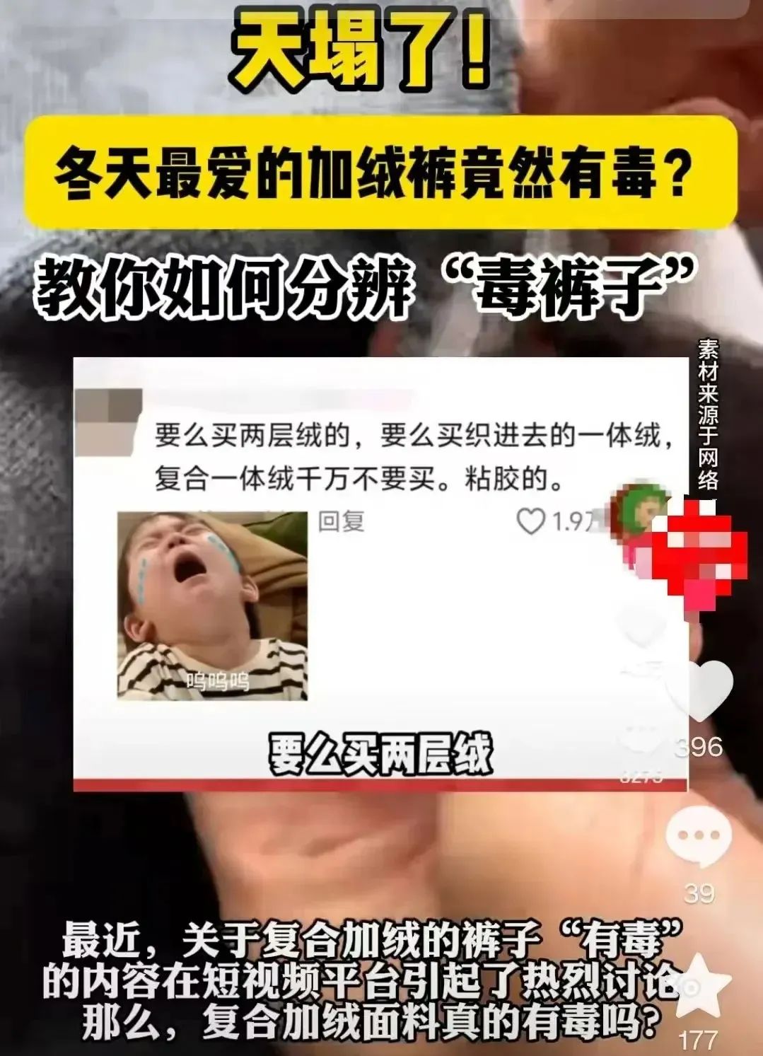 便宜的加绒裤看似划算,却可能暗藏隐患,让健康埋下“定时炸弹”,大家还是小心,正规渠道购买,切勿图便宜┭┮﹏┭┮。