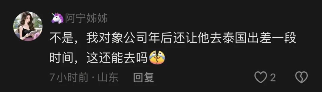 一网友表示,她对象的公司年后还让他去泰国出差一段时间。