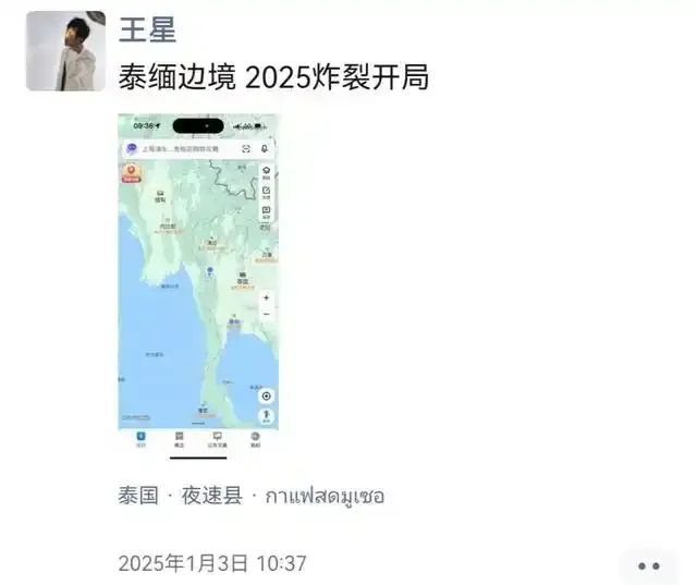 王星最后一条朋友圈,更新于1月3日10点,地点位于泰国的夜速县。