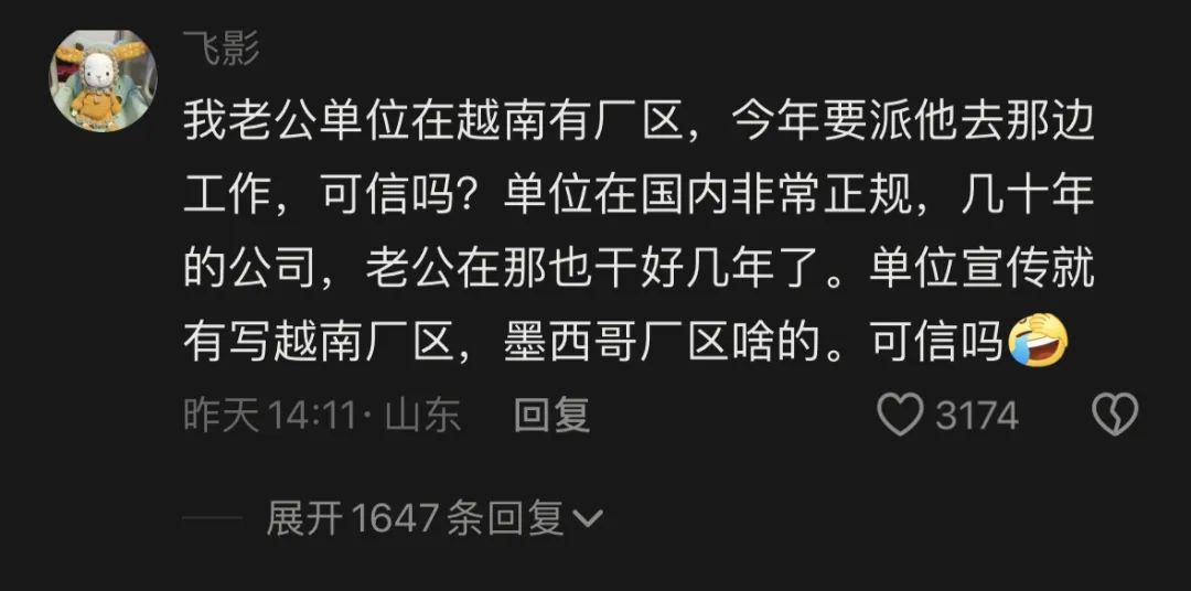 有网友问,她老公单位在越南有厂区,今年要派他去那边工作,可信吗?