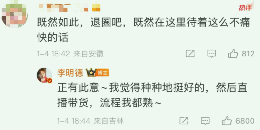 但一夕之间,事件反转,他在舆论场中,从一个热血反抗者,转变为居心叵测的撒谎者,和吃相难看的超雄男。和剧组撕逼的同时,他马上开通了直播打赏,仅一次直播就赚得盆满钵满。他用穷苦小演员的人设去对抗娱乐圈的资本,试图把马天宇拉下马,却被网友扒出,他穿的衣服动辄上万,开的豪车动辄几百万,他却还嘲笑网友是穷酸的柠檬狗。最后直到昨晚(1月7日),李明德直播被平台永久封禁,理由是:“刻意炒作矛盾博眼球”。就在前几天,鹿晗全平台被禁止关注。理由是:该用户违反法律法规。“因在直播过程中,做出了不良示范,本人在此郑重道歉。”造型也好,谈吐也好,传递的价值观也好,都达不到当下需要的优质偶像的标准。当然,全网封禁的原因到底是不是这个,鹿晗还有没有别的事儿?且让子弹再飞一会儿,我相信,被蒙蔽的真相终会水落石出。这些大瓜云集,想必大家也发现了,公众人物的坍塌,真的猝不及防,轻而易举。人啊,得意必忘形,忘形必失控。于是,巅峰离深渊,就只剩一步之遥。事实上,个人的力量是非常小的,当下很多走红的、成功的、站在名利巅峰的人,都是因为吃到了时代红利。否则,帅气的、有才的、努力的人那么多,但处处都是藉藉无名者,为何独有鹿晗爆得大名?仅靠一个人的才、一群人的运作,很难创造长期的奇迹。但时代需求、经济规律、文化潮流、观念导向,加上个人因素,就会合力将一些人长久地捧起。以李明德为例,猝不及防的发疯,肆无忌惮地开炮,确实吸人眼球。但一天过去,他持续发言暴露的东西、直播收礼的行径,令大众对他立的招牌、树的人设开始怀疑。当下也不欢迎剑走偏锋博眼球的作派,需要沉心静气稳扎稳打的处世风格。因为,这会为内娱带去一种暗示:发疯者能成功,超雄男得人心。——在当下,走好该走的路,不要哗众取宠,不要试探底线,否则铁拳落下时,恐怕你难以承受。打眉钉唇钉,说脏话,化烟熏妆,醉酒上直播,挑衅网友......时下需要向善向美,抱朴见素,你作为偶像,却一边奇妆异饰,一边恶言恶行。你若顺势而为,必能好风借力。你若逆势而行,必然举步维艰,甚至一夕倾覆。在反转发生前,都曾表达过一个意思:封就封,退圈就退圈,我不怕。因为,人会为不同的目标,匹配不同的情绪,付诸不同的行动,导致不同的结局。你就会走捷径,立人设,抄近道,短暂地装一装。收割了一波快钱后,就释放出内心的野兽,吞噬了人设,也吞噬了自己。那么,你会为这个目标,一直修炼,努力前行,忽略千辛万苦,不达目的誓不罢休。手捧奖杯,掌声环绕,追光加身时,方觉命运真正由个人创造。1993年5月,她19岁,老师问她:“周迅,你能告诉我,你对于未来的打算吗?”“不满意的话证明你还有救。你现在就想想,十年以后你会是什么样?”“我希望十年后的自己成为最好的女演员,出一张唱片!”“当我意识到这是一个问题的时候,我发现我整个人都觉醒了。”为了成为“最好”的女演员,她从出道之初,就认真对待角色。如同冥冥天注定,她发布了她的个人专辑——《夏天》。命运就是这样,它会公平而缓慢地,验证你的心态,呼应你的行动。“如果你能及时地问自己一句:‘十年后我会怎么样?’你会发现,你的人生就会在不知不觉中发生变化。时刻想着十年后的自己,你会朝着自己的梦想越走越近。”无论何时何地,我们都要满怀信心,一步步让自己变得更好。你在多年前射出的子弹,终有一天,会击中自己的眉心。他多年前修炼的演技,令他在《狂飚》中大放异彩,火遍华人圈。但他多年前的所作所为,也令他在今天非议缠身,声名狼藉。连已经开拍的《谷雨》,也将张颂文临时换成了蒋奇明。星云大师曾说过一句话:“真正有福之人,都是有慈悲、结善缘之人。”有人种恶念,结恶因,得恶果。有人种善念,结善缘,得善果。“福报不是求来的。‘福’就是福气,‘报’就是果报,‘福’与‘报’,两者互为因果。你只有先修得福气,才能得福报。”有时候,一点慈悲、一句好话、一件善事、一些知识,就能让你结善缘。而如果你怀恶念、藏戾气、施暴行,必将在他年他月,品尝到苦涩的恶果。