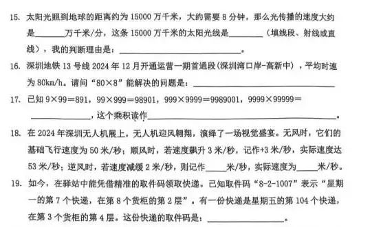 还有部分题目,一时分不清是语文题还是数学题:
