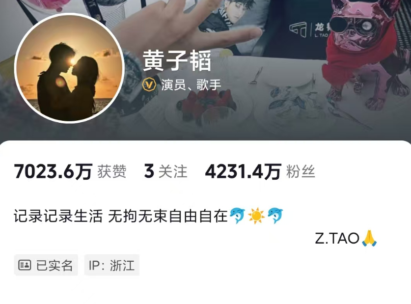 热搜第一!知名男星黄子韬掉粉近300万,此前直播送30辆车10万袋大米 ... ...