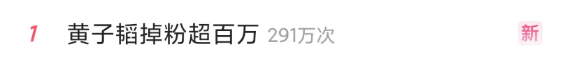 1月12日,话题#黄子韬掉粉超百万#冲上微博热搜第一,引发关注。