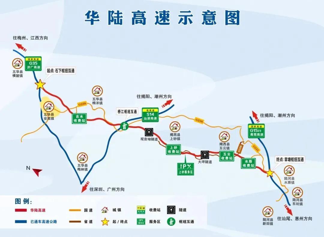 华陆高速是广东省高速公路网规划中“二纵”的重要组成部分,纵向贯穿梅州、揭阳、汕尾三地,串联起安流、棉洋、上砂、五云、水唇五镇,是连接济广高速、汕湛高速、甬莞高速的重要交通纽带。通车后,五华等梅州地区往返汕尾市的路程可缩短49公里,行车时间可节省30分钟。 沿线边坡种了“糖蜜草” 华陆高速共有吉水、上砂、五云、水唇4个出入口,有隧道2座。华陆高速的“软设施”独具地域特色,在观音坳隧道前的可变情报板可以打出“华陆高速欢迎您”字样。 让人眼前一亮的是,全长46公里的华陆高速沿线边坡均呈现一片粉色。原来,边坡种了一种叫“糖蜜草”的草本植物。草高约1米,花序呈圆锥状,粉色柔软,正值花期,成片成片地随风摆动,煞是好看。 新高速沿途有什么玩? 速看游玩指南! ★古大存故居:故居厅内安放古大存汉白玉石雕头像,陈列室摆设有古大存生平事迹简介及有关革命文物等,为五华县第一批重点文物保护单位。(距离吉水站约27分钟) ★五华县奥林匹克体育文化旅游区:该体育场是目前全国标准最高、规模最大的县域运动场馆之一,可承办中甲以上足球赛事及国内国际重要赛事。(距离吉水站约34分钟) ★足球小镇:全国唯一一个以“足球”为特色的国家级运动休闲特色小镇。(距离吉水站约35分钟) ●美食推荐:酿豆腐、鱼生、醮子鸭、梅菜扣肉 ★大北山革命历史纪念馆:参观游览点包含革命历史纪念馆及知青楼两部分,为揭阳市爱国主义教育基地。(距离五云站约55分钟) ★大北山国家森林公园:公园主要景观有十八湾瀑布、龙潭崆瀑布、九县岽、天子壁、北山日出、北山枫林以及毛竹园等。现存的革命旧址红军寮、潮汕人民抗征队后方医院、司令部及红军纪念馆等,是集观光旅游、休闲探险、科普教育及革命传统教育于一体的旅游森林公园。(距离五云站约42分钟) ●美食推荐:棉湖薯壳粄、包粄、凤湖橄榄、鸟仔粄 ★激石溪革命根据地先烈纪念园:激石溪革命根据地的旧址全面见证了1923-1933年期间中国共产党开展“农运”和建军壮烈的革命洪流,以及解放战争时期的烽火岁月。(距离水唇站约46分钟) ★世外梅园:国家AAA景区,景区内的山水石林等自然景观独有神奇,包括梅园栈道、十里花溪、梅花博物馆、老电影收藏室等等,每逢二十四节气之小大寒,漫山遍野的梅花凌寒盛开。(距离水唇站约23分钟) ★红色欢乐谷:谷中设有高空索道、VR游戏体验馆、网红乐园、彩虹滑道等游乐项目,其中独具特色的“红军长征体验馆”,建设了从“瑞金”到“延安”,从血战湘江到激战腊子口等一系列体验区。(距离水唇站约45分钟) ●美食推荐:坑螺、米花糕、陆河擂茶、柿饼 来源:信息时报 |
