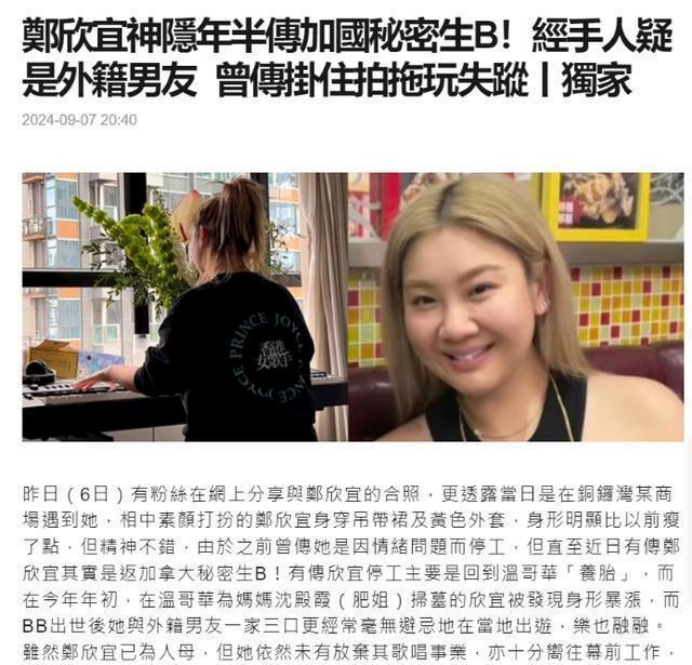 曾有传言说,郑欣宜回加拿大结婚生子了。