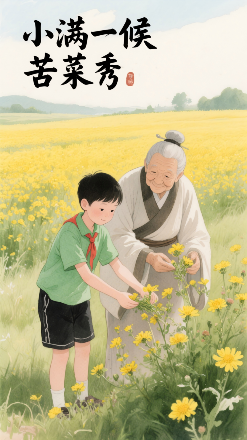 植物科普:苦菜是耐旱野菜,开黄花,含苦味素,古人用它清热解暑(联系中医“药食同源”)。