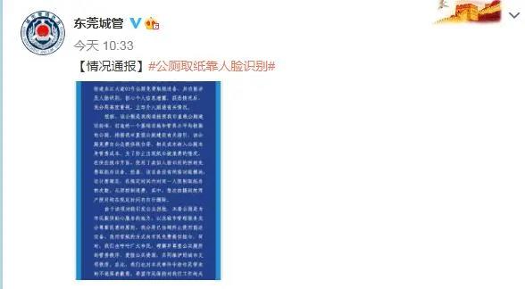住酒店,人脸识别… 去楼盘售楼处看个房子 很可能被人脸识别 现在取张厕纸也要人脸识别了??近日, 东莞一星级公厕“刷脸”取厕纸 就在网上引起了热议! 位于东莞莞城街道东江大道03号的公厕最近在网络上火了,因为其使用了类似人脸识别的照相免费取纸巾的设备,虽说是方便了大家免费取用厕纸,但是人脸识别的方式却引起了一些市民的担忧。 采用人脸识别取纸机之后,市民只需站在取纸机前3秒,通过机器自动“刷脸”功能,便能得到设定好的纸量,由于取纸量及取纸频率都是设定好的,还可杜绝同一人短时多次重复取纸造成的纸张浪费的不文明现象,一定程序上提升了市民文明素养。 据报道,该人脸识别取纸设备的生产企业是天津首联科技有限公司。据该公司官网显示,该公司的第五代人脸识别厕纸机是“为了方便市民用纸及节约企业购纸成本而设计。” 图片来源:天津首联科技有限公司官网截图 产品介绍显示:使用者面部对准机器屏幕上的识别区域,只需3秒,供纸机就可以自动送出60-100公分卫生纸,足够一个成年人的使用量。每人在设定时间内(默认9分钟)只可扫描领取一次厕纸,等待设定时间过后才可再次领取。如在设定时间内重复领取,系统会语音提示并且不再出纸。人脸识别供纸机不仅解决了大部分公厕无纸的困境,还极大的改善了用纸的浪费情况。 该企业工作人员接受媒体采访时表示,公司的设备已经通过了公安部安全与警用电子产品质量检测中心的检测。检测报告中的“人脸识别信息自动删除功能检验”的检验项目中显示,检验结果是“符合要求”。 12月6日,东莞城管在微博通报回应此事称,初衷为防止浪费。“刷脸”设备没有网络功能模块,可在规定时间内限制同一人取纸巾的次数。每次拍摄到的用户照片均在规定时间内自行删除。目前已终止使用该设备,改用常规的方式免费提供纸巾。 通报称,近期,该分局在工作中发现,有市民反映我街道东江大道03号公厕免费取纸设备,其功能涉及人脸识别,担心个人信息泄露。获悉情况后,该分局高度重视,立即介入跟进有关情况。经核,该公厕是该街道按照东莞市星级公厕建设标准,打造的一个基础设施和管养水平均较高的公厕。根据该市星级公厕建设有关指引,该公厕免费向公众提供纸巾等,相关成本纳入公厕本身管养成本。为了防止出现纸巾被浪费的情况,在供应纸巾方面,使用了类似人脸识别的照相免费取纸巾设备。经查,该设备没有网络功能模块,设计原理是,在规定时间内对同一人限制取纸巾的次数,从而控制浪费。其中,每次拍摄到的用户照片均在规定时间内自行删除。 由于该项功能引发公众担忧,本着公厕是为市民提供贴心服务的地方,以及城市管理服务充分尊重民意的原则,该分局已协调终止使用前述设备,改用常规的方式向市民免费提供纸巾。同时,城管部门也呼吁广大市民,理解并尊重公共厕所的管养秩序,爱惜公共资源,共同维护好城市文明秩序。城管部门也对本次事件中给市民带来的不适深表歉意,希望市民保持对我们工作的关注和支持,有任何意见和建议,随时向城管部门反映,全民共建共治共享美丽东莞家园。 你认为公厕刷脸取纸 有必要吗? 来源:东莞日报 |