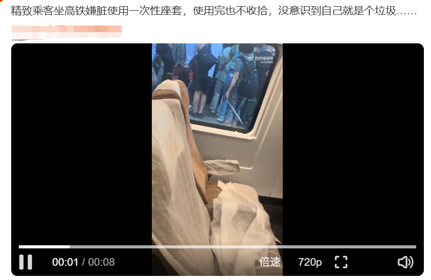 最近,正值暑假出游高峰期,很多人都有乘高铁出行的需求。有网友发帖称发现列车上有不少乘客自带一次性座套。有网友评论称,暑期气温较高,人们穿着清凉,怕被其他人传染皮肤病。此前,就有乘客把脚搭在小桌板上,或者拖鞋直接踩高铁座椅的报道。记者在各网购平台上看到,有的店铺专供高铁动车的一次性座椅套已经售卖了10万余件。商铺工作人员也表示,这是专门针对高铁座椅防脏污的,属于热销产品。有产品介绍称,高铁座椅180天才清洁一次,以此推销产品。有网友发现,女星杨子姗也曾在视频中晒出,上高铁就套上一次性座椅套。7月17日,12306官方客服工作人员表示,列车在起点站和终点站各消毒一次,座椅套的清洗时间是不固定的,如果有乘客将座椅弄上明显污渍,列车员会立即更换。工作人员还表示列车上暂时没有一次性座椅套售卖,如果觉得不放心可以自行准备,对于上架一次性座椅套的建议铁路集团也会考虑。不过,也有网友指出,有乘客套完一次性座套后就留在座位上,给后续坐车的乘客也造成困扰。Simsalabiiim :不需要,这样就更不会好好消毒了。