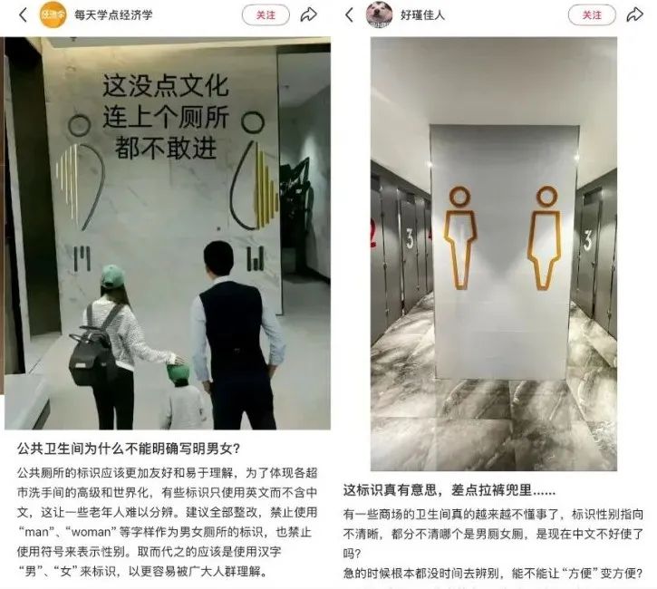 一种是图案寓意太深,网友遇到厕所用长颈鹿和大象来指代性别,难度堪比学习一门新外语。这种用法来源于法语地区,长颈鹿固定为阴性词汇,常指代女厕。