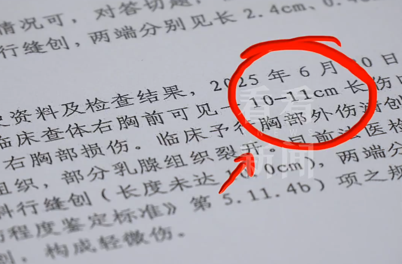 我脸侧着靠着墙睡觉的时候,他一直在那叨叨叨,我就没理他。 然后他就说你转不转过来,你不转过来小心我拿刀捅了你。然后当时他就拿着刀在外边晃晃。他说我打到刀,其实我没有打到,他说出血了,我低头一看,那个血都是直接往外冒的。 一共缝了三层,外面的伤口大概11厘米。