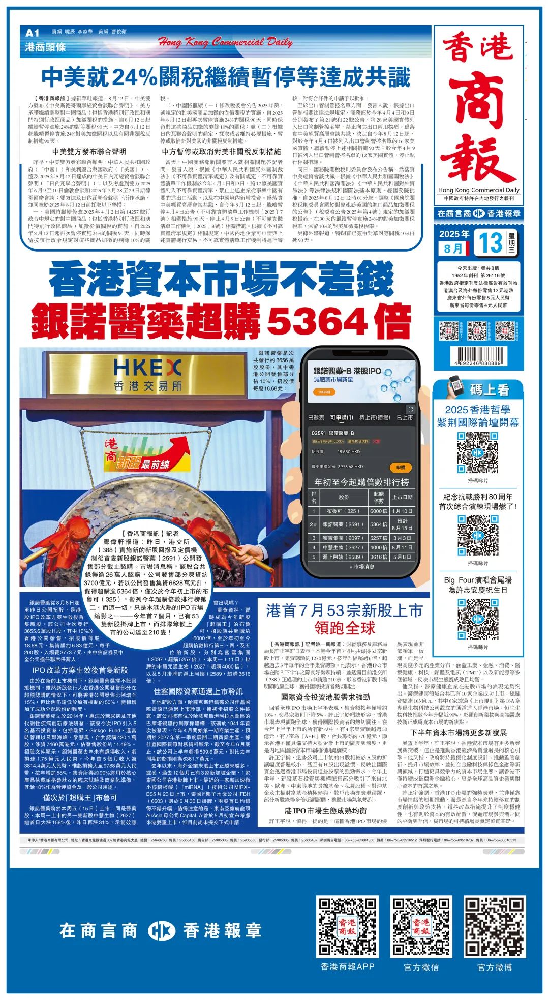 香港今年有望重夺全球IPO集资王宝座,首7个月共有53宗新股上市,集资总额多达1270亿元,按年劲升6倍。财库局局长许正宇昨发文指,踏入下半年之际,此良好势头持续,正处理的上市申请超过210宗。趁港股牛气冲天,资金来港浪接浪,新股纷纷来港增添热度,有关方面诚宜乘势而上,积极拓展香港资本市场的广度与深度,巩固和提升香港作为资金与上市企业的“超级聚宝盆”地位——正如许正宇所言,让香港不仅成为亚洲金融核心,更是全球高质量企业与耐心资本的首选地。